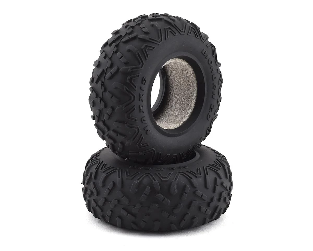 Axial 1/18 Yeti Jr Maxxis Bighorn 2.0 Tires. Package includes two tires with foam inserts.