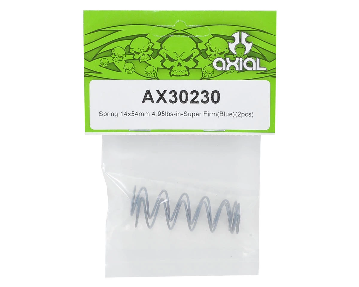 This is a pack of two 14x54mm Firm – 4.95 lbs/in, Shock Springs. Axial offers a full range of springs to fine tune your suspension. Available in low through high rate, choosing the right spring will help your vehicle perform at it’s best.