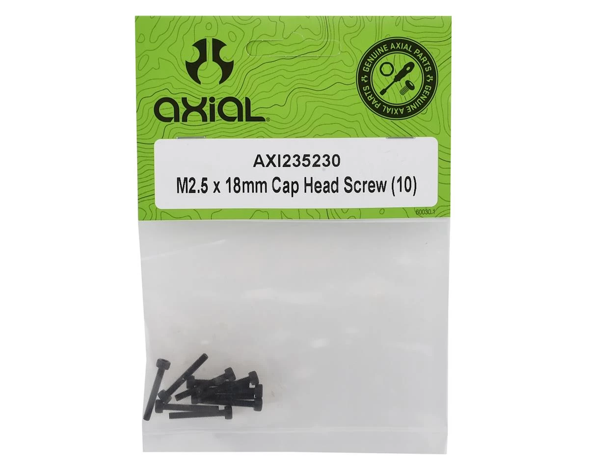 Axial 2.5x18mm Cap Head Screws. These screws are used to secure the diff cover to the axle housing in SCX10 III applications, but can be used in any application that uses a 2.5x18mm cap head screw. Package includes ten screws.