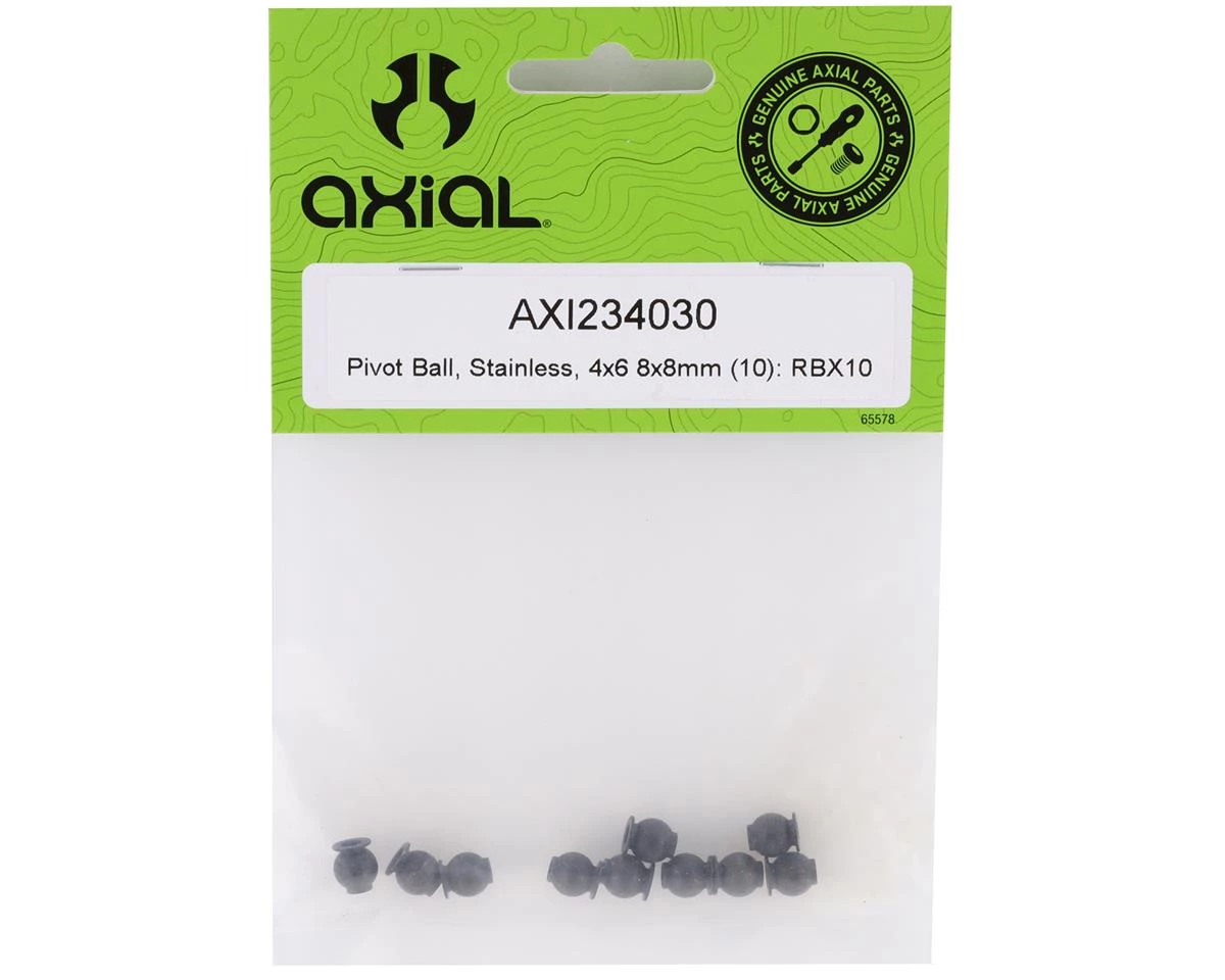 Axial 4×6.8x8mm Stainless Pivot Ball. Package includes ten replacement pivot balls used in the RBX10 Ryft shocks.