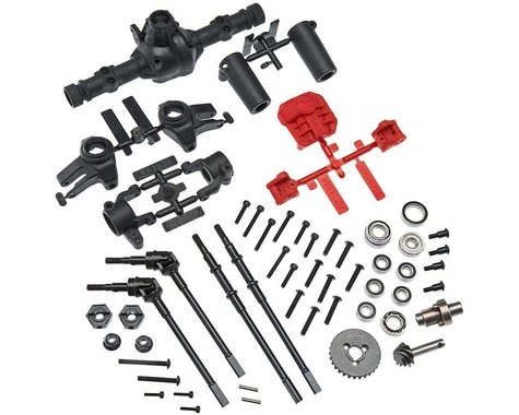 This is the Axial AR44 Complete Locked Axle Set for Front or Rear Application on the Axial SCX10 II. This set allows you to build one front or one rear AR44 axle. Axail included UVJ axles if you choose to build a front axle, and straight axle shafts if you choose to build a rear. If you plan on building both a front and rear axle, you’ll be better off purchasing two of these kits and using the remaining parts as spares. You can buy individual parts, however, buying these sets are more economical.
