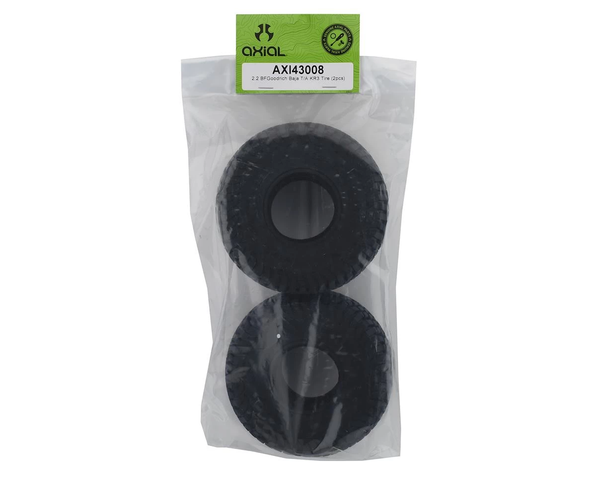 Axial BF Goodrich Baja T KR3 2.2″ Rock Crawler Tire. These tires are included as stock equipment on the RR10 Bomber 2.0 “Bomber Fabrication” model, and are molded in R35 compound rubber. Package includes two tires and two foam inserts.