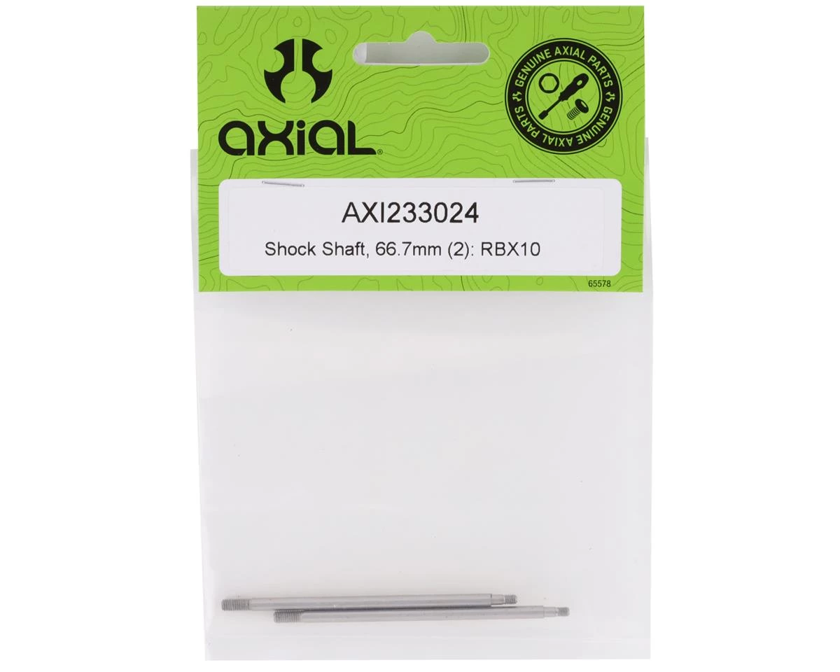 Axial RBX10 66.7mm Shock Shaft. These replacement shock shafts are intended for the front of the Axial RBX10. Package includes two shock shafts.