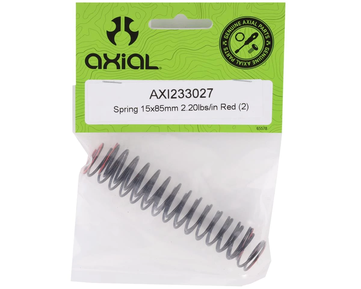 Axial 15x85mm Shock Spring. Package includes two 2.20lb red springs that are used in the front position of the stock setup.