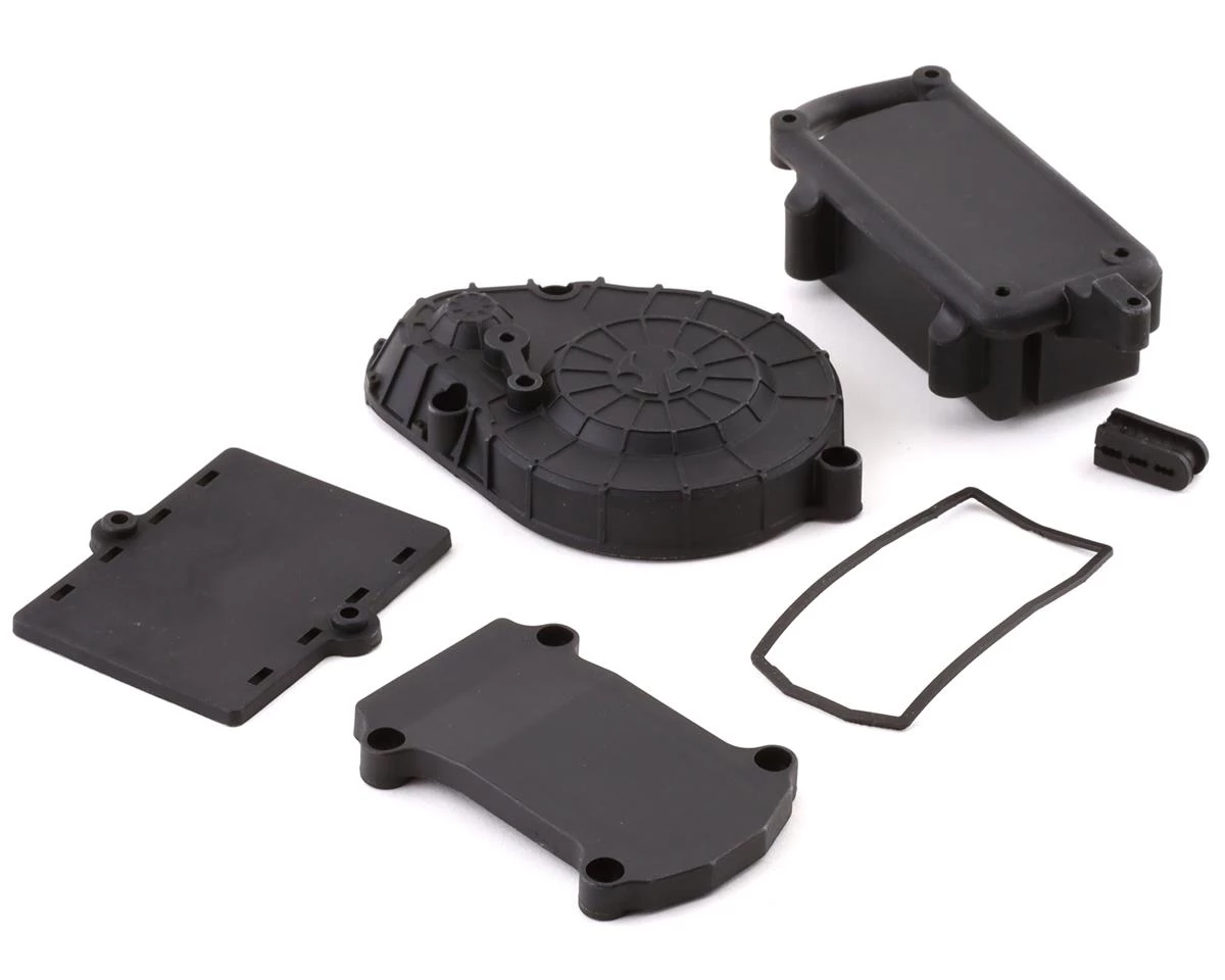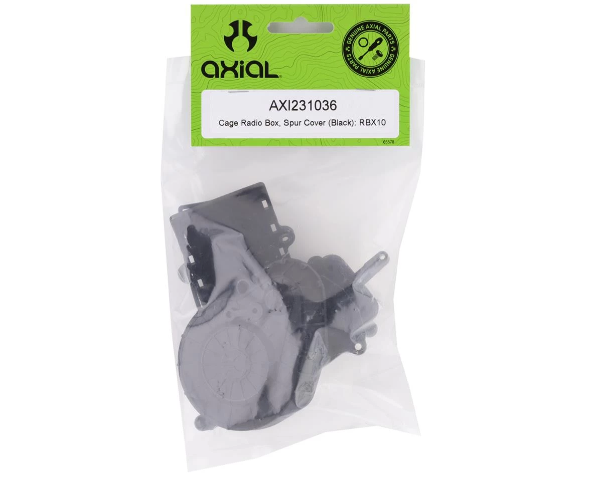 Axial RBX10 Ryft Radio Box & Spur Cover. Package includes replacement radio box, radio box lid, gaskets, and spur gear cover.