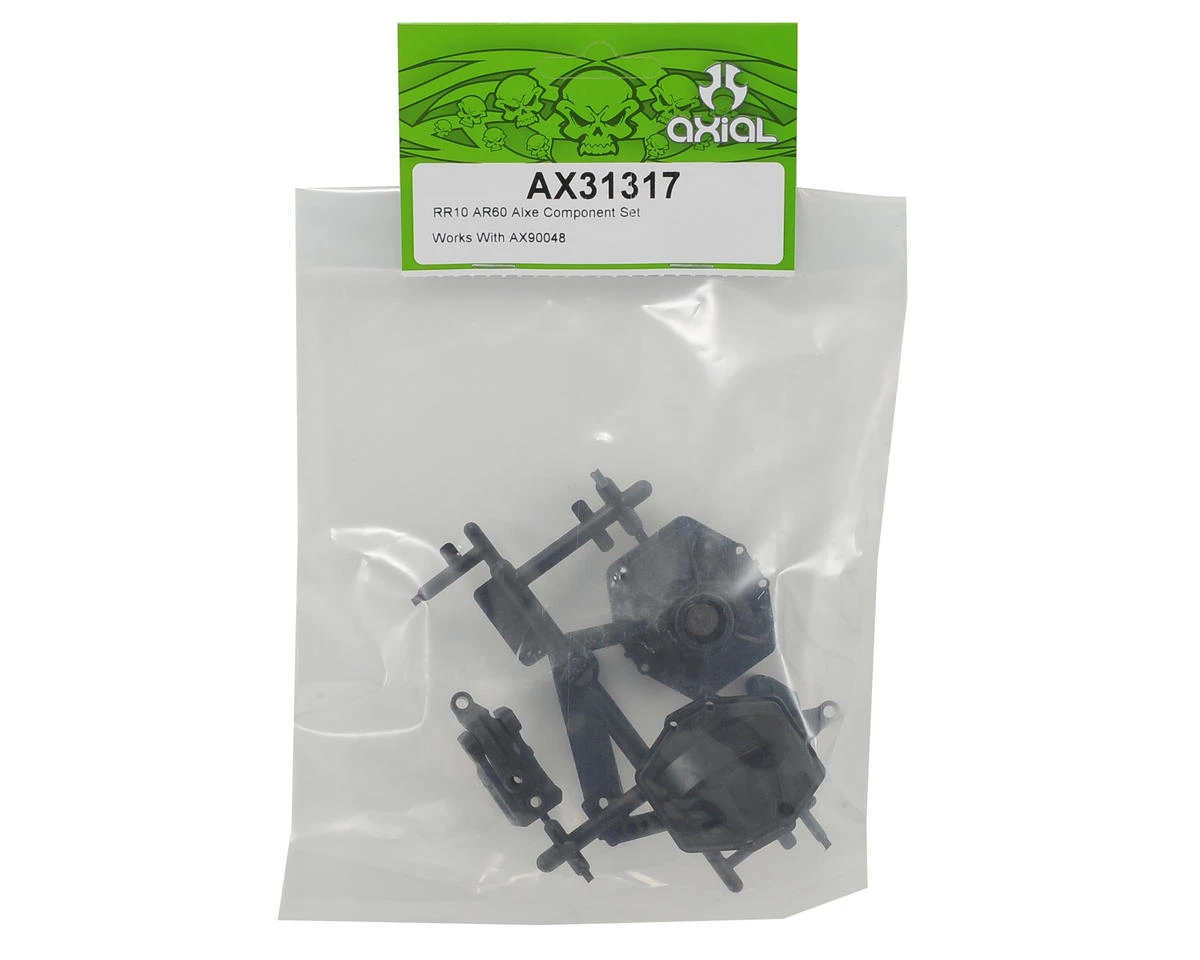 Axial Racing RR10 Axle Component Set. Package includes the stock replacement diff cover, diff caps, shock mounts and servo mount for the AR60 axles included with the RR10 Bomber.