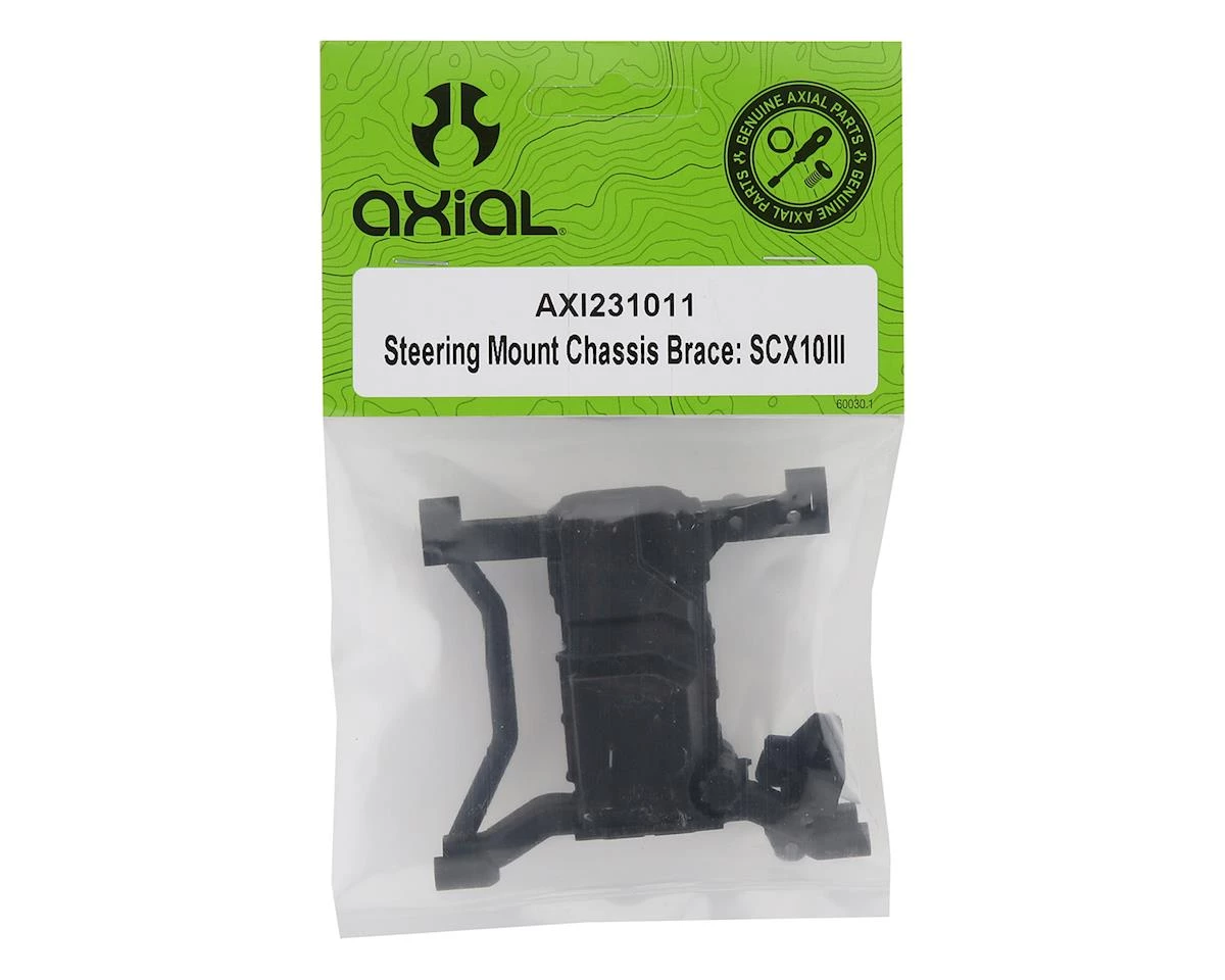 Axial SCX10 III Steering Mount Chassis Brace. This is the replacement servo mount for the Axial SCX10 III. Package includes one servo mount chassis brace and one servo mount bracket.