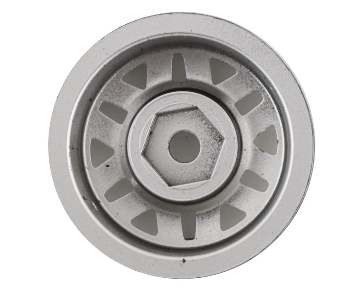 Axial SCX24 1.0 KMC Machete Wheels. Package includes four satin silver wheels.